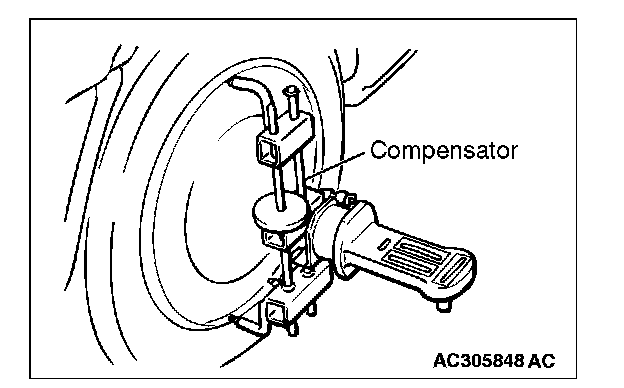 ^ For FWD vehicles with aluminum wheels, attach the camber/caster/kingpin gauge by using a compensator.