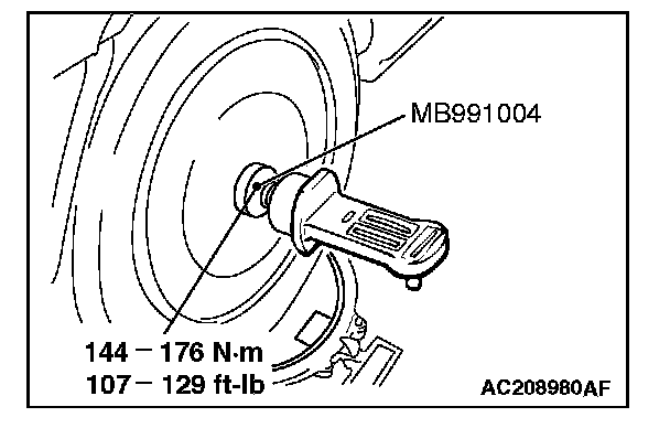 ^ For AWD vehicles with aluminum wheels, tighten the wheel alignment gauge attachment (Special tool: MB991004) to the specified torque, then measure the camber.