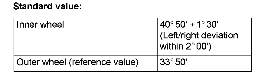 3. If not within the standard value, adjust the tie-rods (right and left), and repeat Steps 1 and 2.