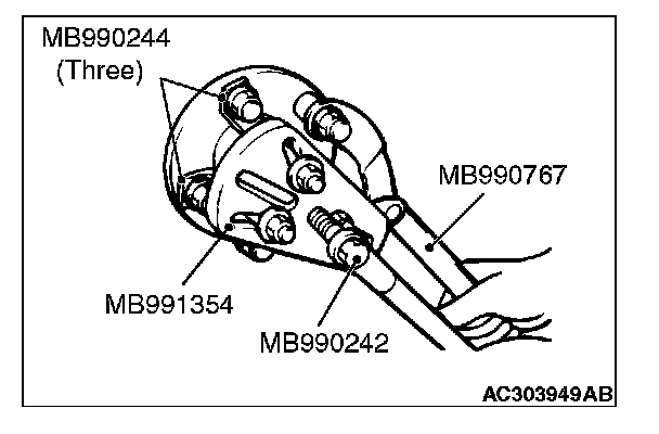 1. Install special tool MB991897 or MB992011 as shown in the figure.