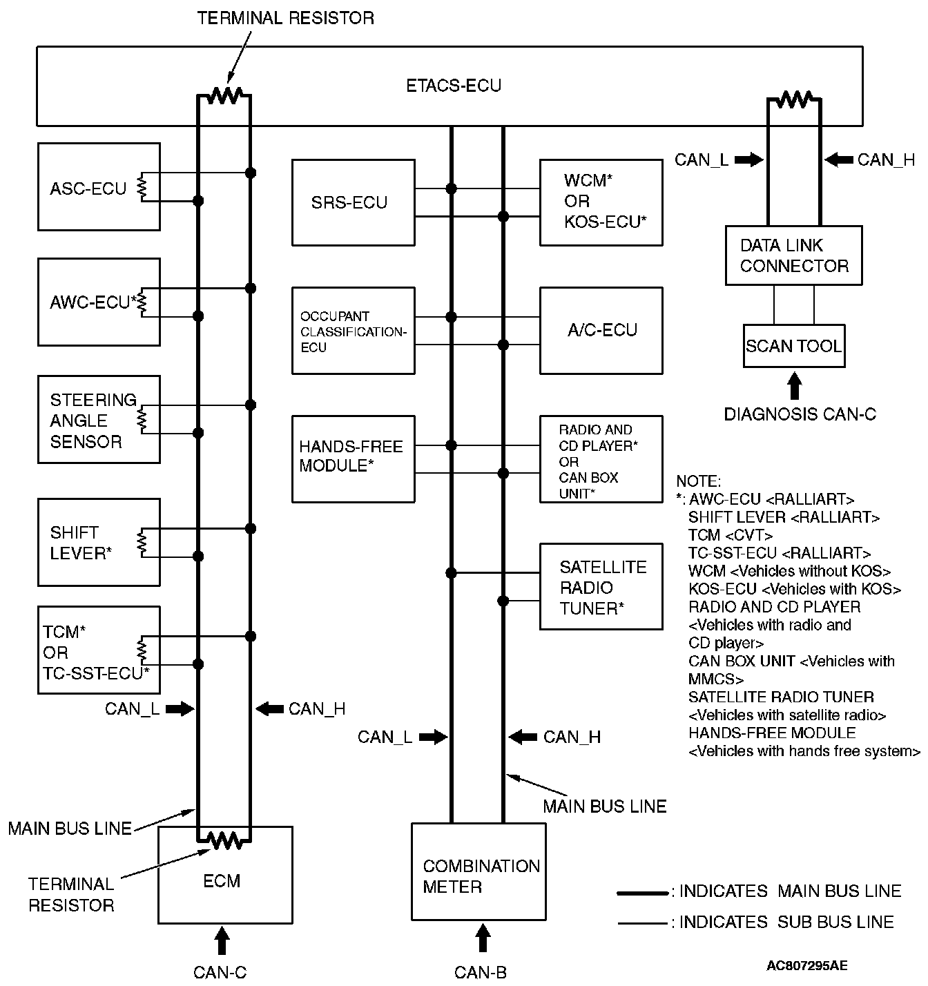 - Non-dominant ECU: ECU and sensor on CAN-C network, excluding ETACS-ECU and engine ECU