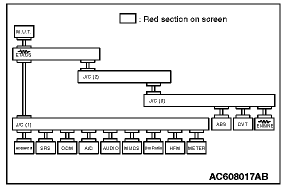 DIAGNOSTIC ITEM 1: Diagnose when the scan tool cannot receive the data sent by ETACS-ECU.CAUTION: When servicing a CAN bus line, ground yourself by touching a metal object such as an unpainted water pipe. If you fail to do so, a component connected to the CAN bus line may be damaged.