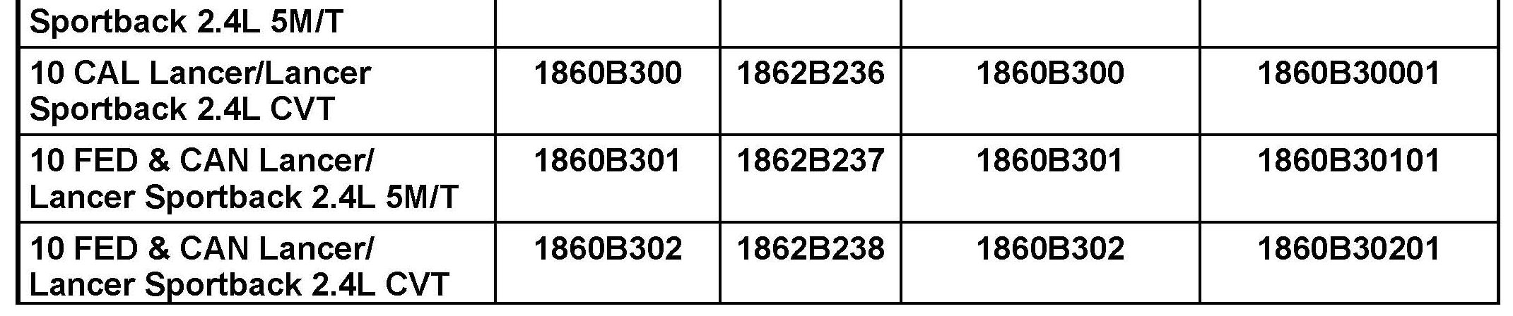 Use only the Genuine Mitsubishi Parts listed below.