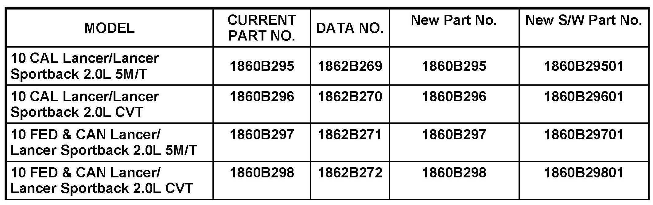 ECM REPROGRAMMING CHART (4B11 - 2.0L)