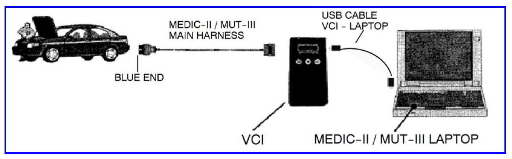 ^ Connect the MUT-Ill main harness with the blue DLC connection to the VCI.
