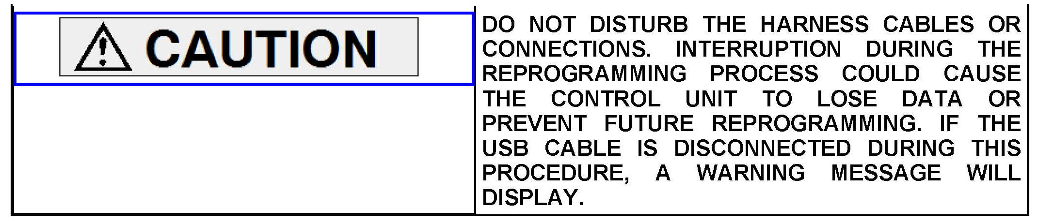 BATTERY VOLTAGE (AS MEASURED AT THE BATTERY POSTS WITHOUT ELECTRICAL LOAD) MUST BE KEPT AT 12.4V OR HIGHER IN ORDER TO REPROGRAM THE ECM.
