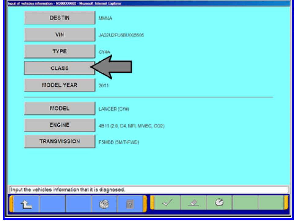 h. Click on the icon in the lower RH corner of the screen to have MUT-III automatically read the VIN. If a message appears saying that the VIN cannot be input automatically manually type the 17 digit VIN into the VIN field at the top of the page.