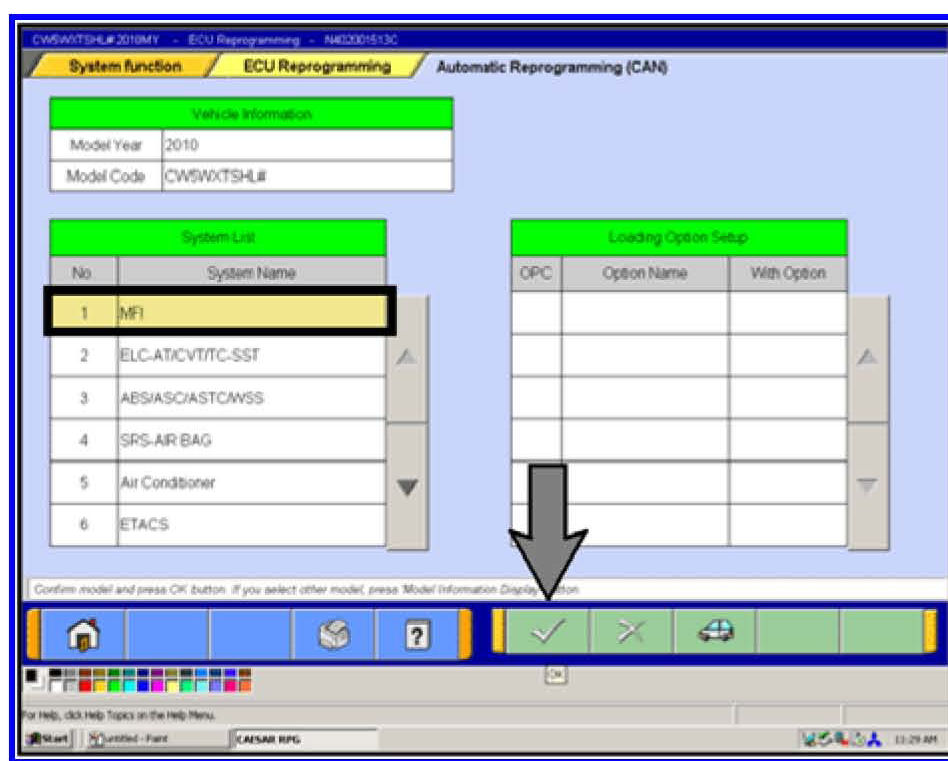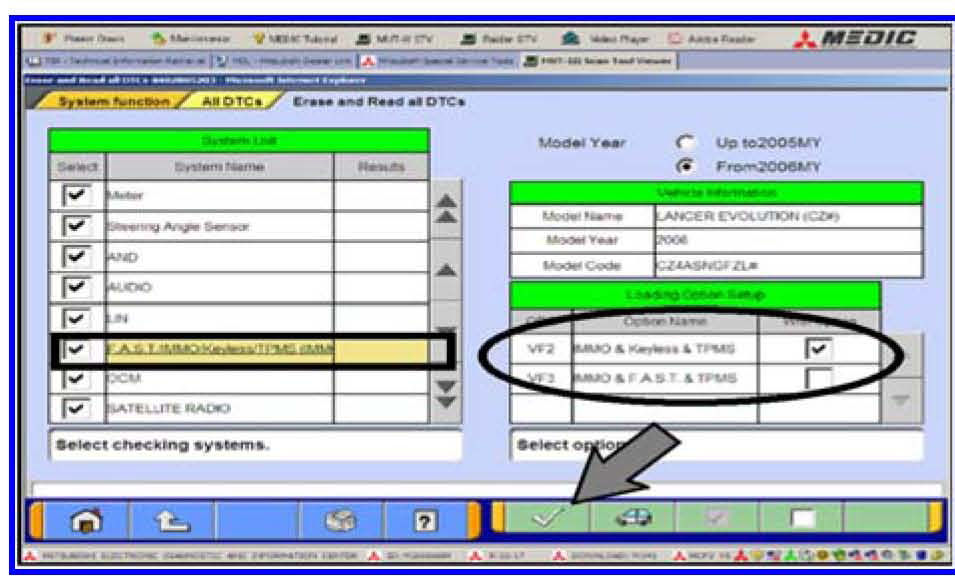 e. If the check mark at the bottom of the page remains inactive in the left column scroll to and click underlined system titles. When the Loading Options Setup list (right column) appears click the appropriate box for your vehicle. Repeat this procedure until the check mark becomes active then click it to continue.