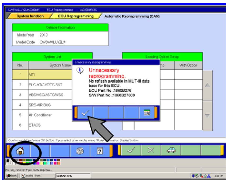 If an "Unnecessary Reprogramming" message does not appear, continue with step n.