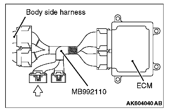 1. Disconnect all ECM connectors. Connect the power plant ECU check harness special tool MB992110 between the separated connectors.