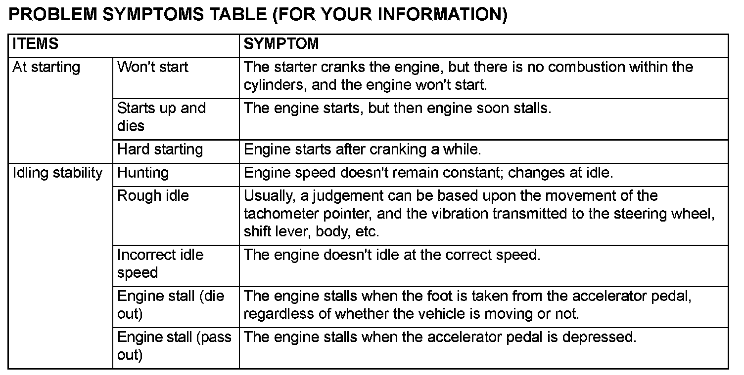 PROBLEM SYMPTOMS TABLE (FOR YOUR INFORMATION)