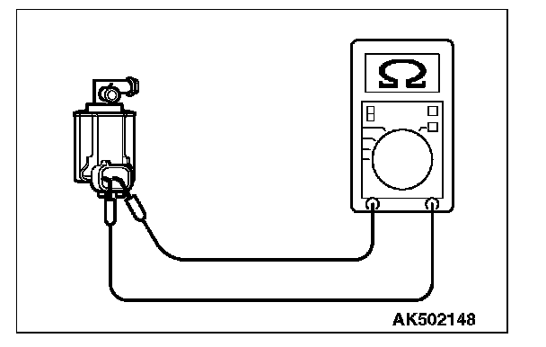 6. Measure the resistance between the terminals of the EVAP purge solenoid.