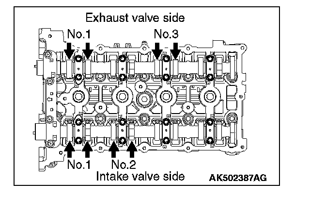 2) Tighten to the specified torque in order shown in the illustration.