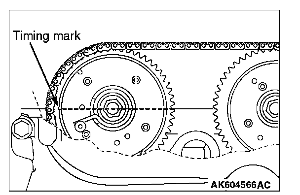 5. Turn the crankshaft clockwise 360°, and put the timing mark on the exhaust camshaft sprocket in position shown in Figure. Therefore, No. 4 cylinder goes to the compression top dead center.