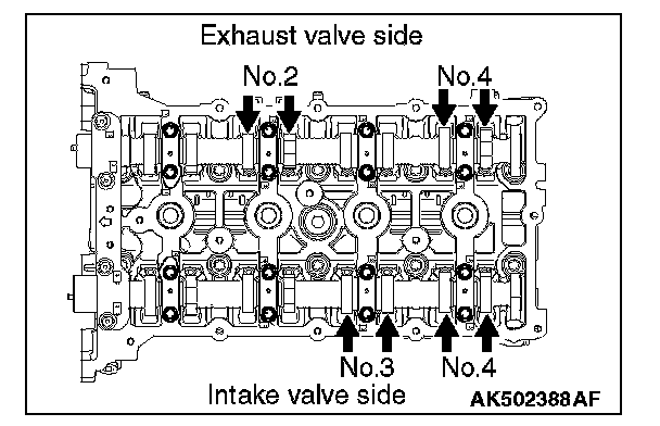 7. If the valve clearance is deviated from the standard value, remove the camshaft and the valve tappet.