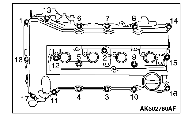 14. Install the cylinder head cover and tighten the tightening bolts using the following procedures.