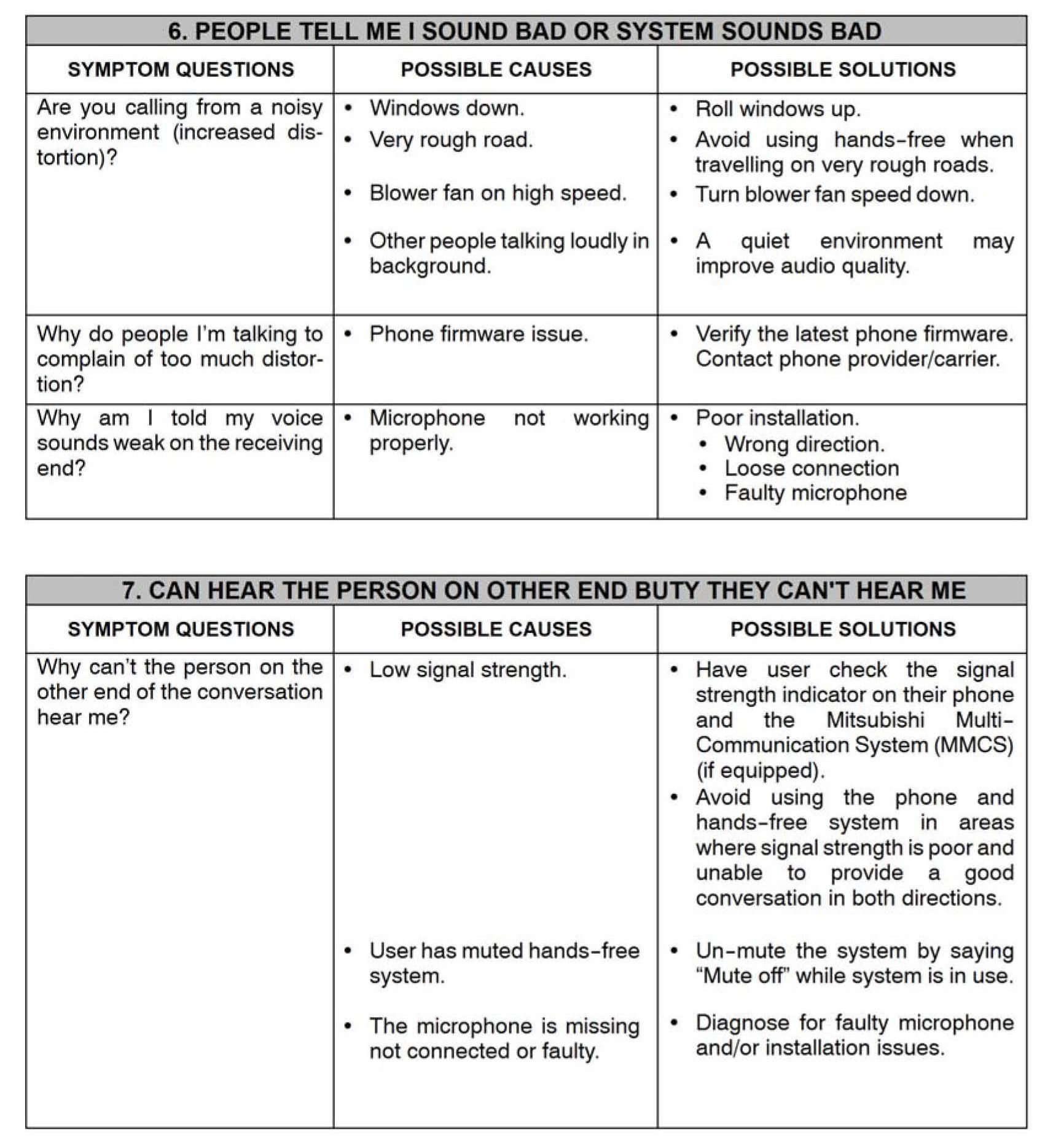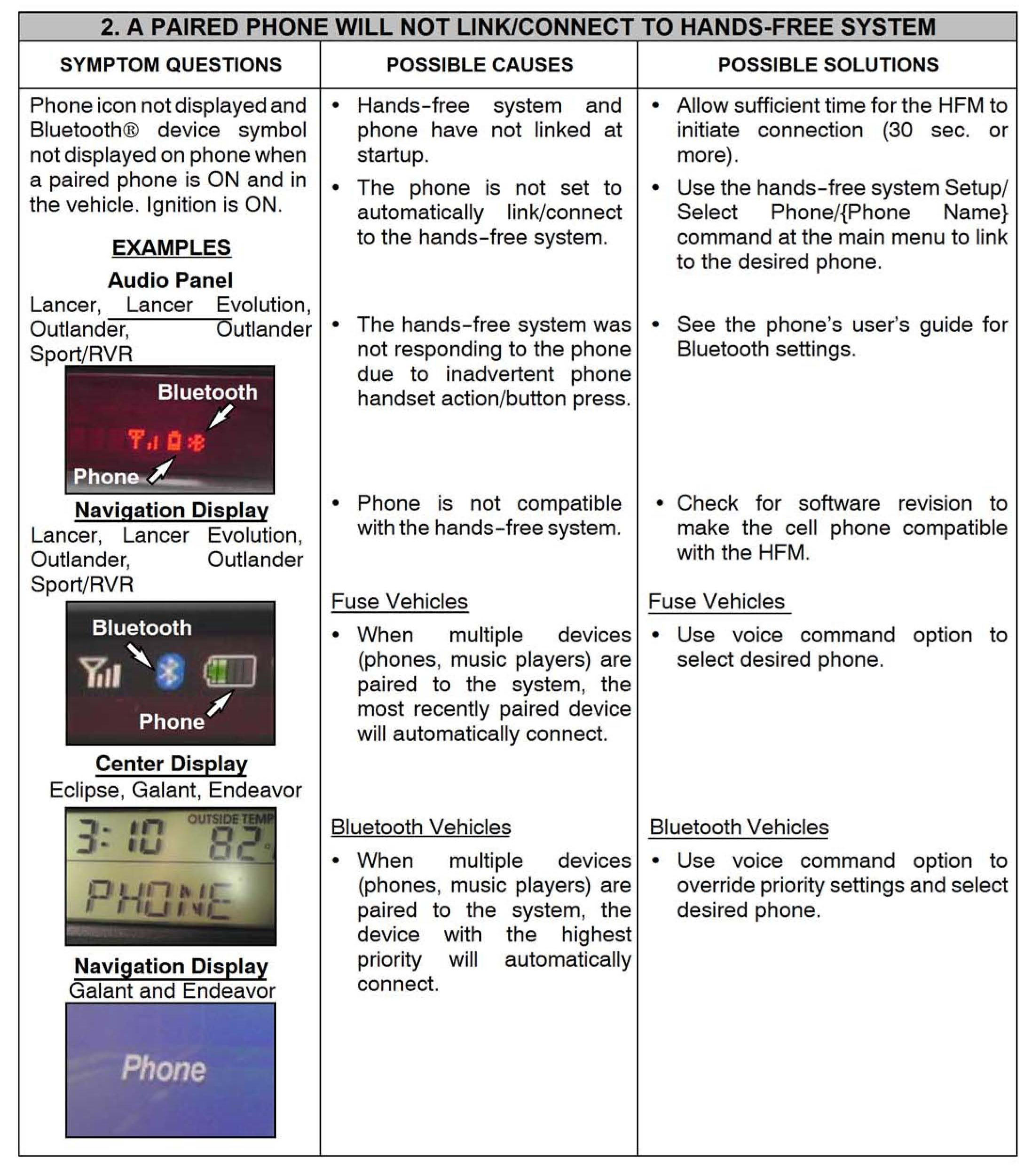 Hands-Free/Fuse Symptoms and Possible Solutions
