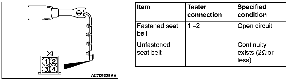 Seat Belt Buckle Switch Continuity Check (Passenger's Side):