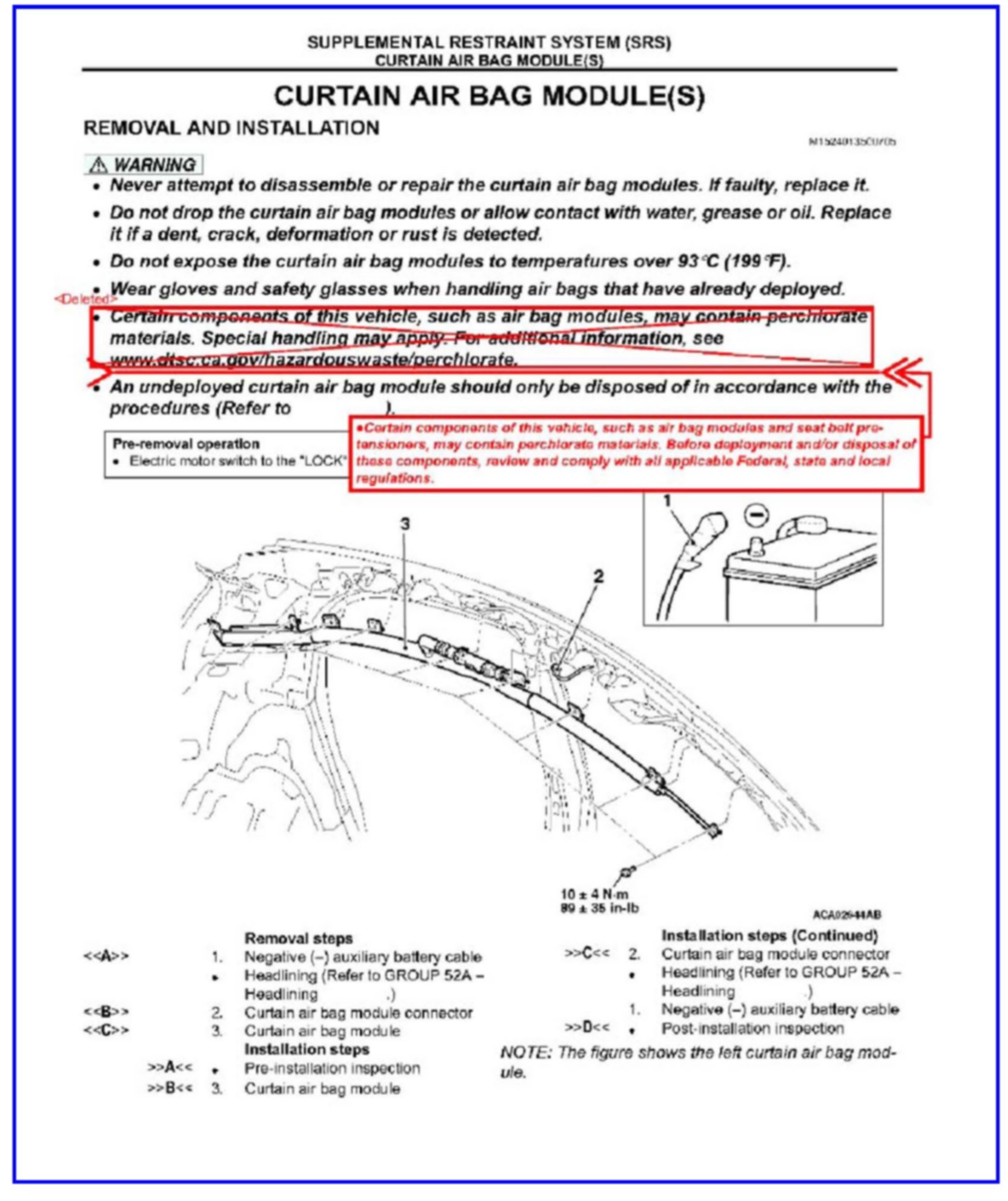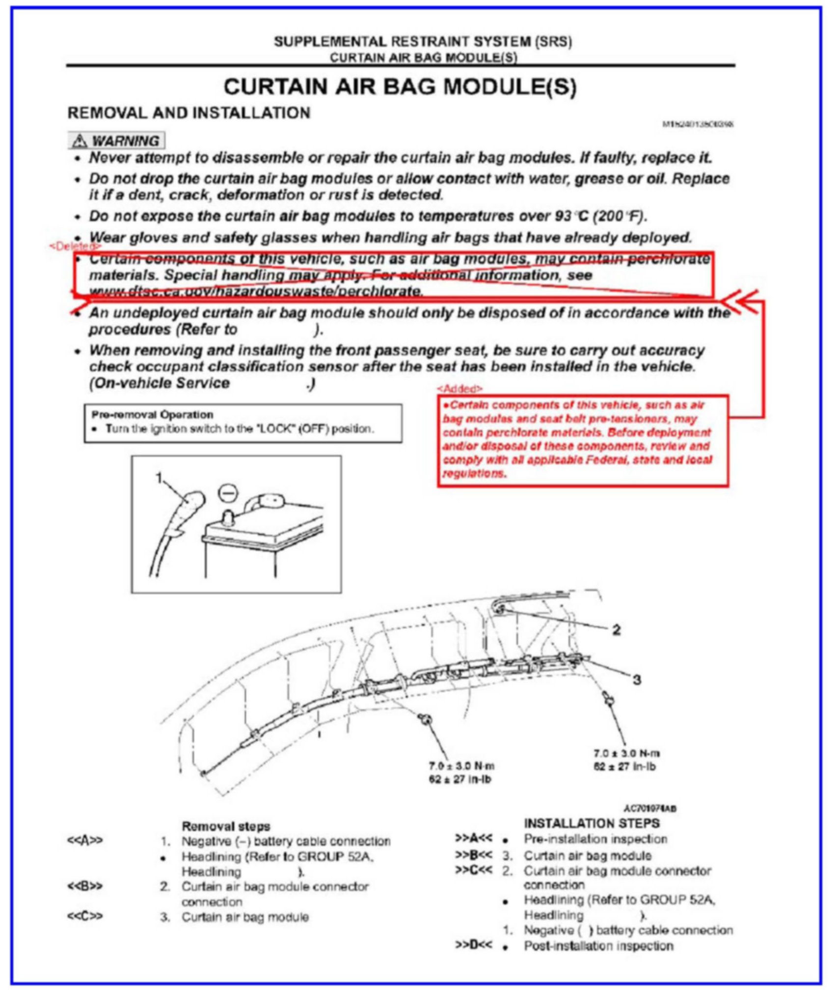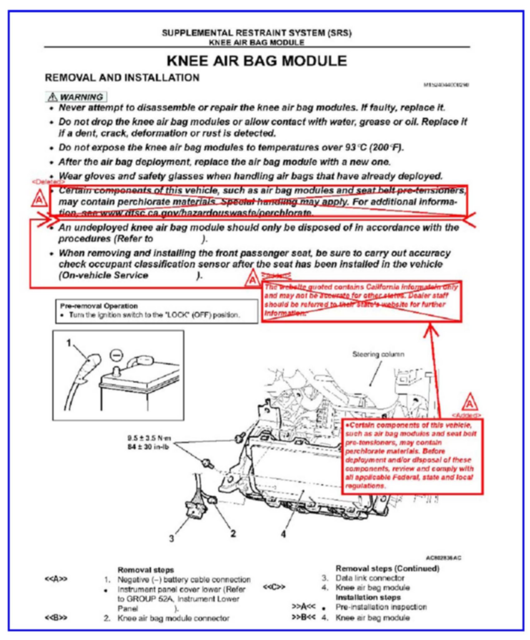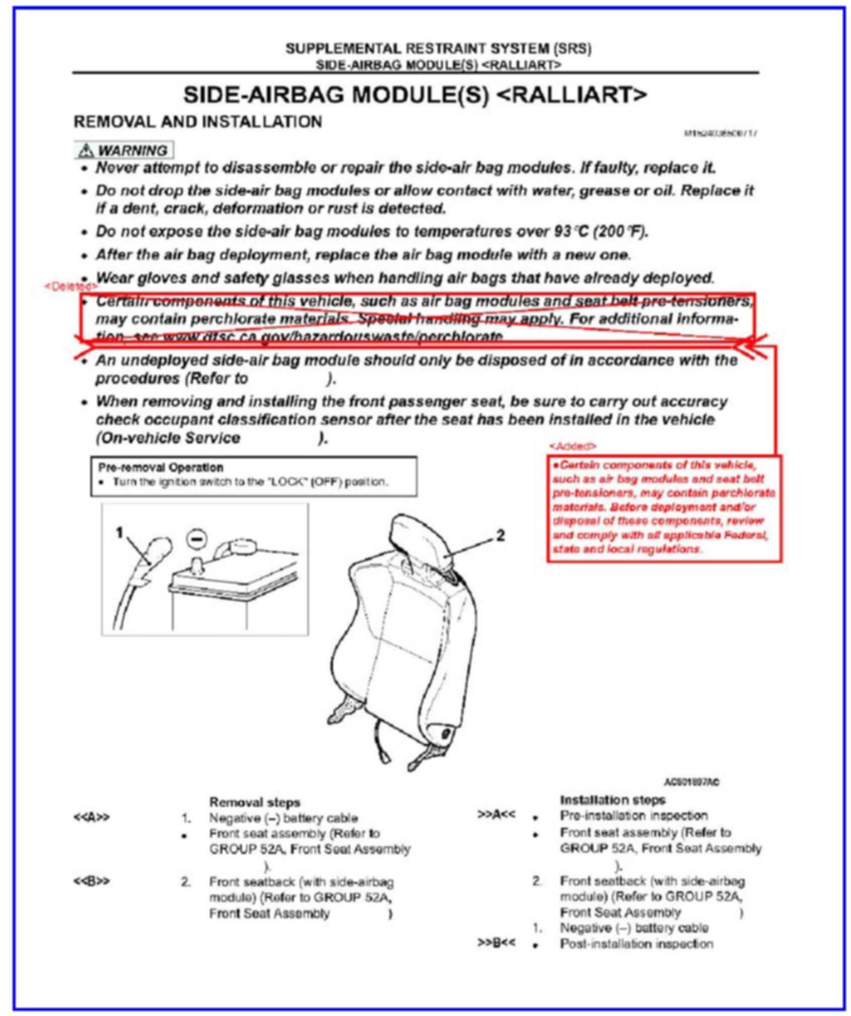 Caution statements regarding the disposal of certain SRS components have been incorrect in the service manuals of affected vehicles. This TSB provides updated caution statements.