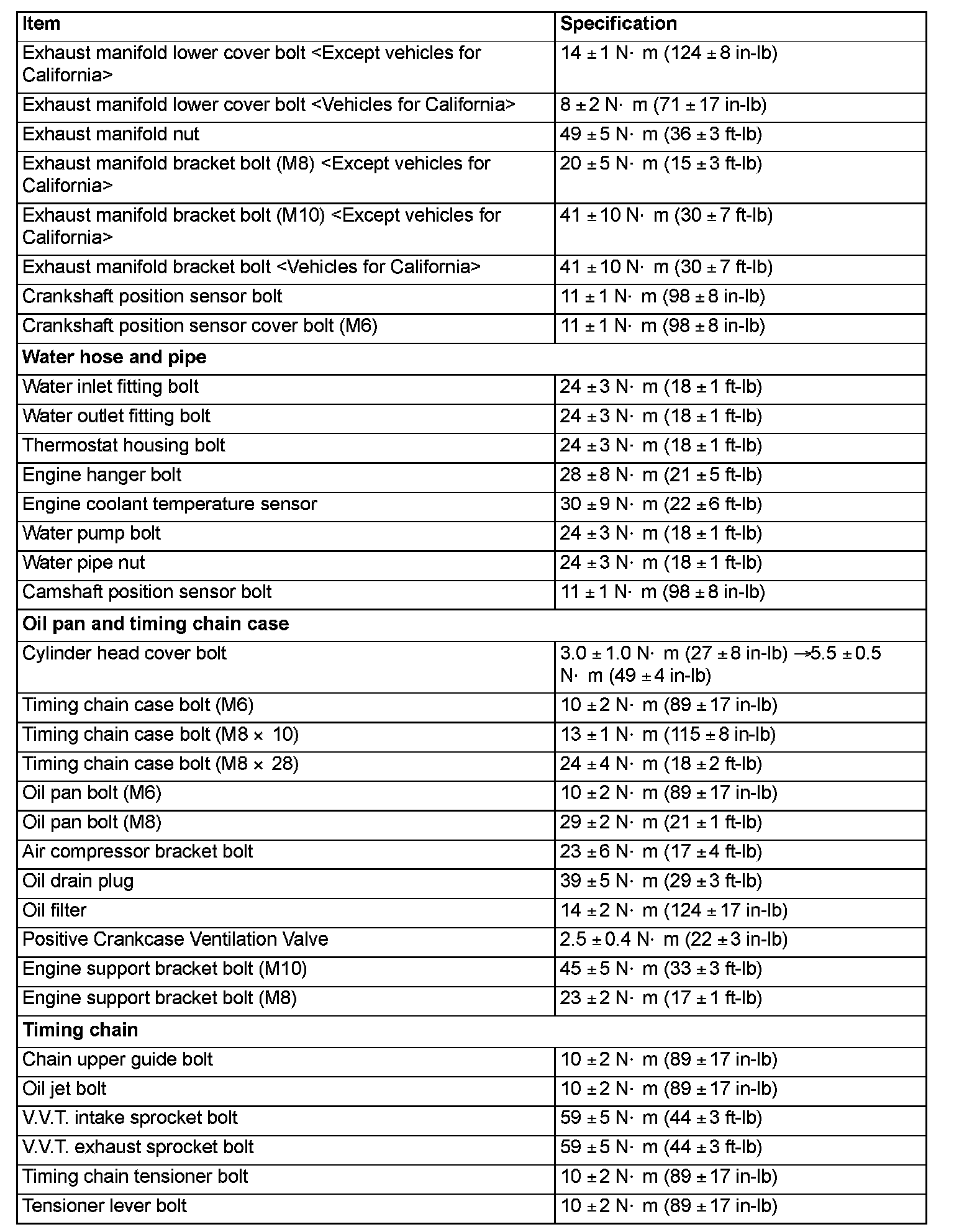 Torque Specifications