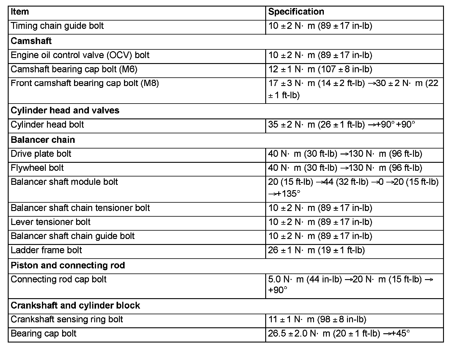 TORQUE SPECIFICATIONSNEW TIGHTENING METHOD BY USING PLASTIC REGION TIGHTENING BOLT