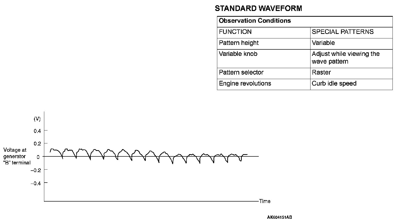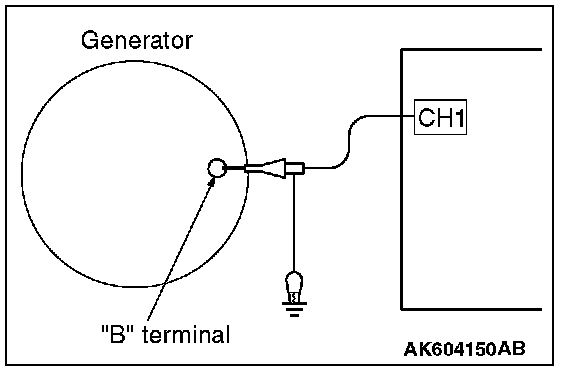 If the ripple height is abnormally high (approximately 2 V or more during idling), the wires between the generator "B" terminal and the battery have broken due to fuse blowing, etc. The generator is usually operating properly.