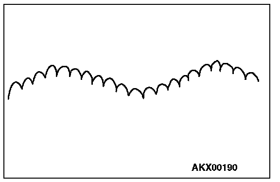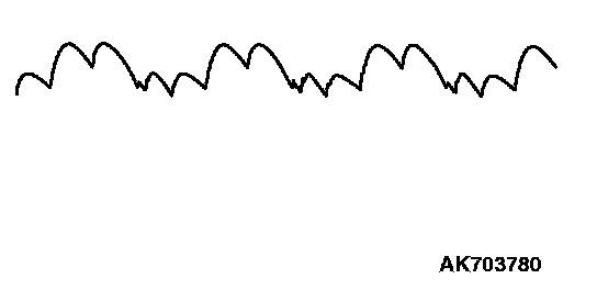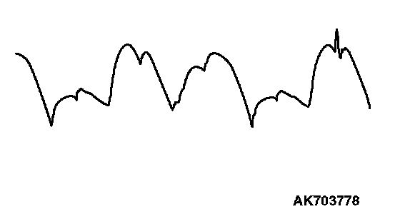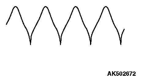 NOTE: The voltage waveform of the generator "B" terminal can undulate as shown at left. This waveform is produced when the regulator operates according to fluctuations in the generator load (current), and is normal for the generator.