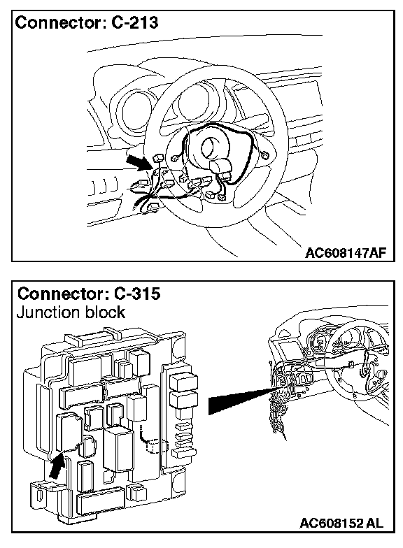 STEP 3. Check key reminder switch connector C-213, ETACS-ECU connector C-315 for loose, corroded or damaged terminals, or terminals pushed back in the connector.
