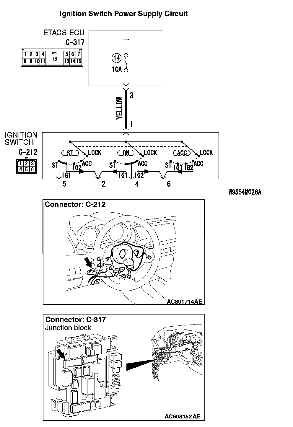 STEP 5. Check the Wiring harness between ignition switch connector C-212 (terminal No.1) and ETACS-ECU connector C-317 (terminal No.3).