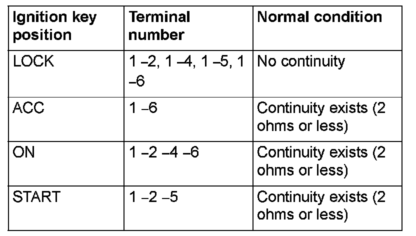 Remove the ignition switch. Then check continuity between the switch terminal.