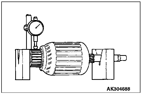 1. Place the armature on a pair of V-blocks, and check the deflection by using a dial gauge.