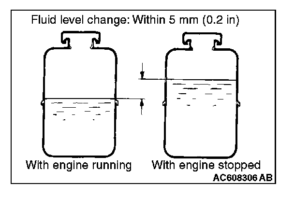 9. Confirm that the change in the fluid level is no more than 5 mm (0.2 inch) when the engine is stopped and when it is running.