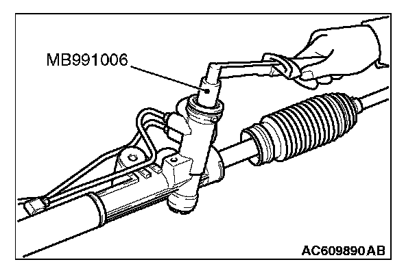 1. Using the special tool preload socket (MB991006) to rotate the pinion at a rate of one turn per 4 to 6 seconds, and then measure the pinion total rotation torque.