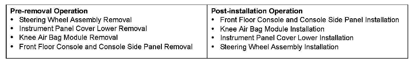^ Before removing the steering wheel, driver's air bag module assembly and Knee Air Bag Module refer to Service Precautions, Driver's Air Bag Module(s) and Clock Spring and Knee Air Bag Module.