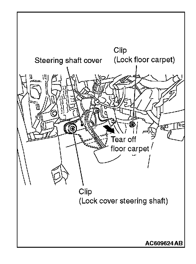 1. Remove the clip (for securing the floor carpet), and turn back the floor carpet.