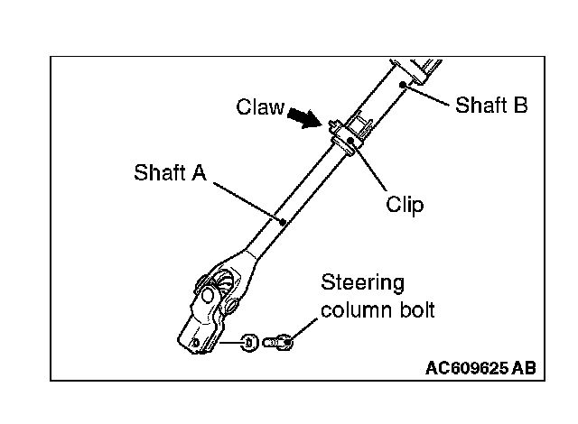 2. Disconnect the steering gear from the steering column assembly while sliding the shaft A to the shaft B with the clip claw as shown in the figure is pinched.