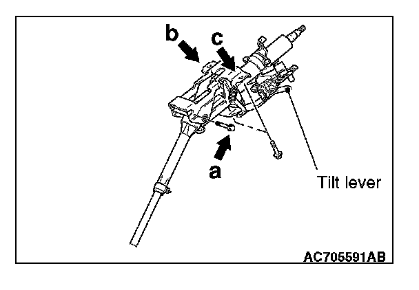 2. Temporarily tighten the mounting bolts in the order of a, b, and c, and then tighten them in the order of c, b, and a to the specified torque.