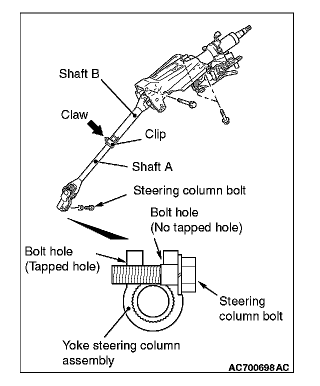 2. Insert the steering column bolt from the no tapped bolt hole, and tighten it to the specified torque.