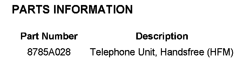 PARTS INFORMATION