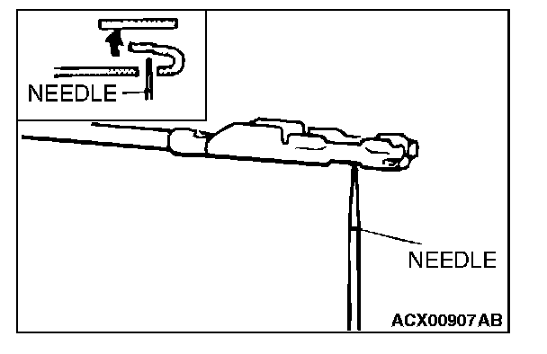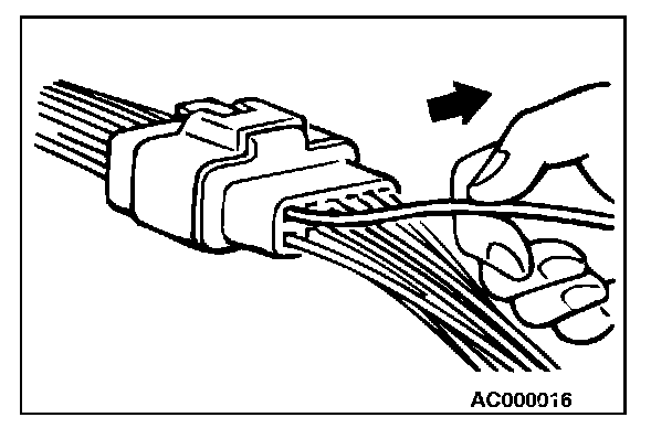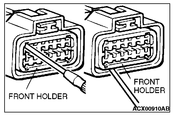 2. If the connector is disconnected for checking and the facing part is the female pin side, use an appropriate male terminal for checking the contact pressure of connector pins (like MB991219).