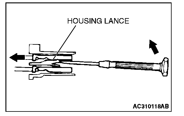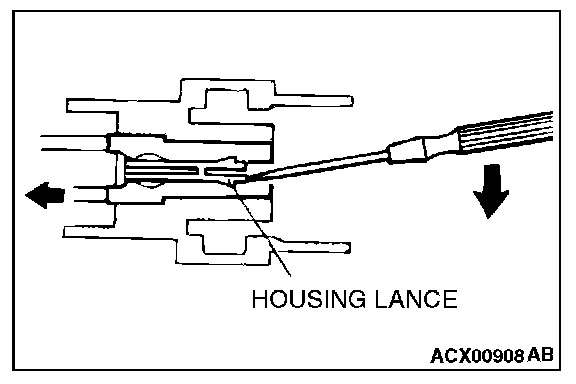 Loosely engaged terminals can be repaired by removing the female terminal from the connector housing and raising its lance to establish better engagement. Removal of the connector terminal used for MFI and INVECS-II A/T control circuit can be done in the following manner.