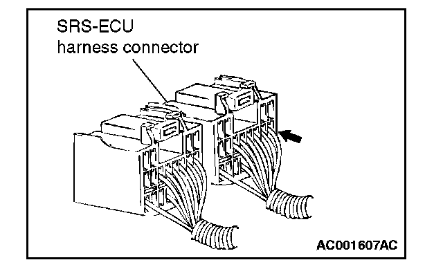 Since the SRS-ECU harness connector is plated to improve conductivity, observe the warning below when checking this connector.