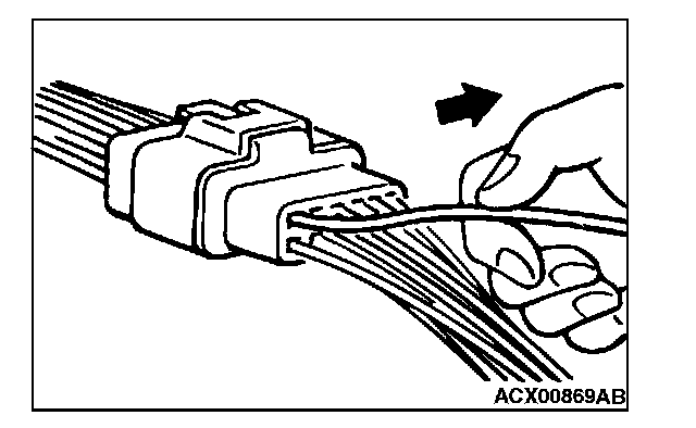 Use special tool, MB991219 to inspect the engagement of the male pins and female pins. [Pin drawing force: 1 N (0.2 pound) or more]