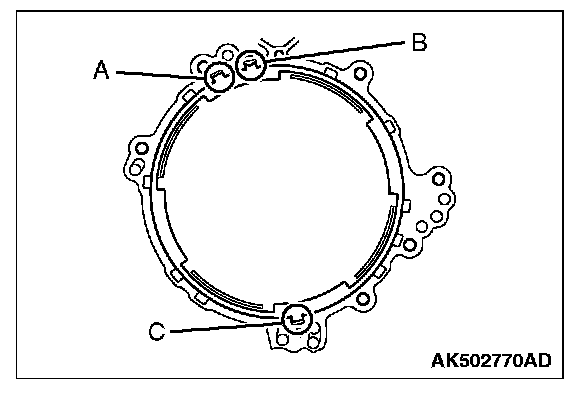 When installing the retaining plate, align the tangs at positions A, B, C in the diagram.