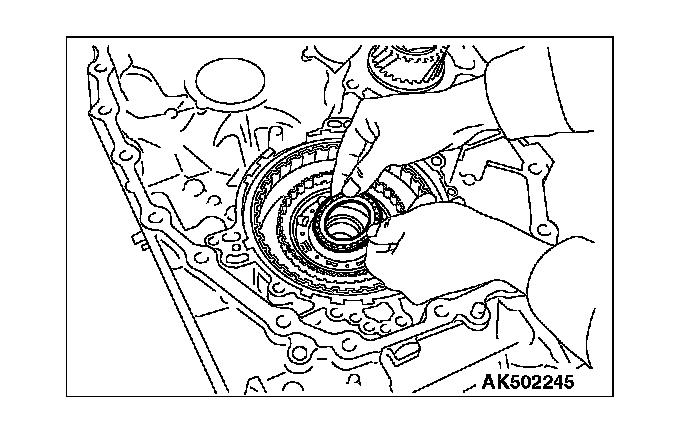 9. Install the needle bearing on the primary pulley side of the sun gear. Refer to B in the "IDENTIFICATION OF NEEDLE BEARINGS" for right direction.