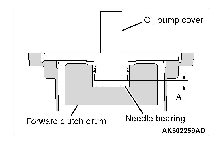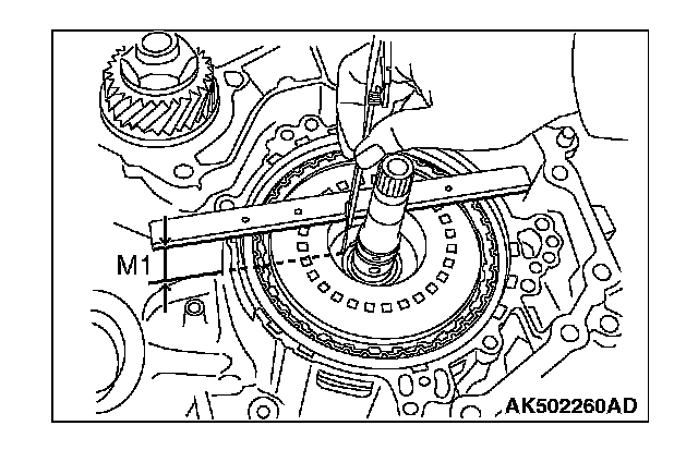 1) Measure the distance M1 from the oil pump cover mounting surface of the transaxle case to the needle bearing mounting surface of the forward clutch drum.