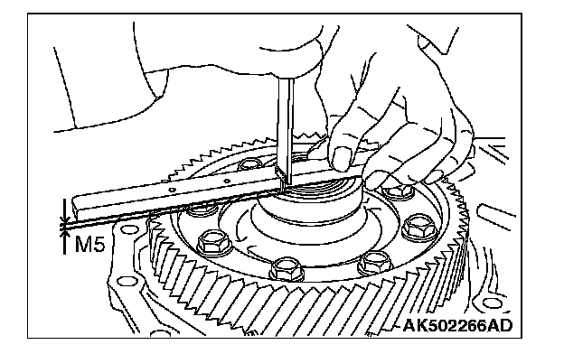 3) Install the outer race on differential side bearing, and measure the distance M5 from the differential case to the outer race of differential side bearing.