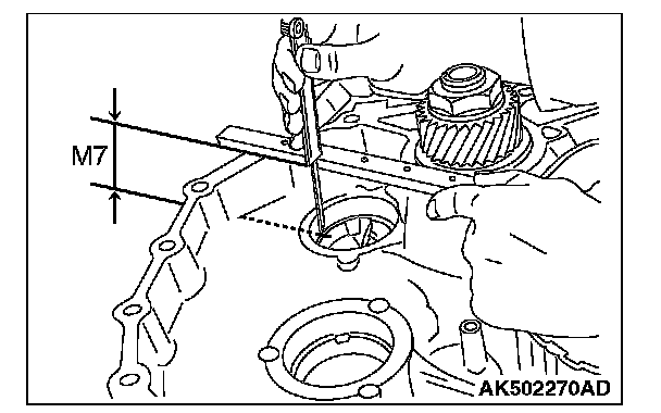 1) Measure the distance M7 from the edge of transaxle case to the mounting surface of adjusting shim.