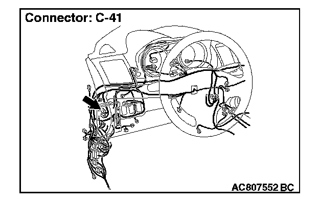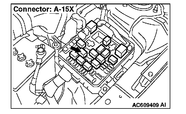 ^ Between A-15X CVT control relay connector (terminal No.3) and C-41 TCM connector (terminal No.12)