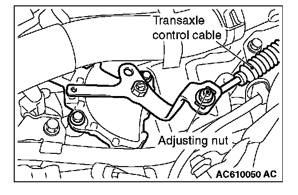 5. Use the adjusting nut to tighten the transaxle control cable to the specified torque.